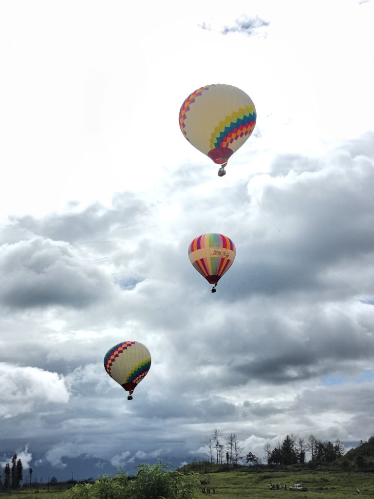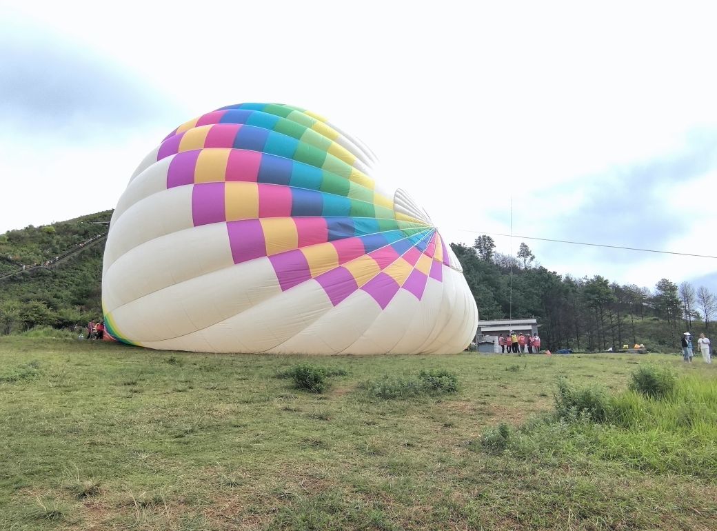那天清晨,天气预报说会有间断小雨,乘坐热气球恐怕有点悬。但心想既然来了,无论如何也得去碰碰运气。 腾冲的热气球之旅,本应是一场悬浮于火山之巅的静谧奇幻之旅。不仅可以俯瞰整个火山地质公园,还能近距离看见那个巨大的、绿色的火山口——它就安静地躺在气球的正下方,像大地沉默的眼睛。 前往公园的路上,空中飘起细密的雨丝,偶尔有披着雨衣的电瓶车从身旁掠过。心里不禁一沉。可没想到,刚抵达公园门口,雨竟悄然停住。我心中一喜,赶紧买票入园,快步朝着起飞场方向走去。 不一会儿,湛蓝的天空中已经飘起两只热气球,明艳的色彩在阳光下缓缓升降,如梦似幻,仿佛童话里的场景。我赶忙到售票窗口买了票,在入口处排起了队。此时已有六七个气球升空,斑斓多彩,像是被撒向空中的花朵,成为这片绿色山峦中最亮眼的点缀。 前面只剩几个人,很快就要轮到我了。我暗自窃喜:看来运气还不错!就在此时,工作人员的声音透过喇叭传来:“起风了,今天所有飞行立即停止,请各位游客办理退票。” 仿佛一盆冷水浇下。老天怎么这样呢?千里迢迢而来,只为这一次体验,却连一点情面都不留。我仍怀着一丝不甘,站在原地等等看,盼望还能有一线转机。直到看见工作人员开始收拾遮阳伞,才知道最后一丝希望也彻底消失。 生活就是这样吧,不可能事事如意,总有些意想不到的转折。既然无法改变,那便随遇而安。或许,留点遗憾,也是为了下次再来腾冲的理由。