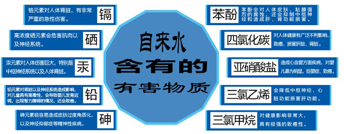 下面这张图,让我们更直观地了解到自来水中原来还含有以下物质: