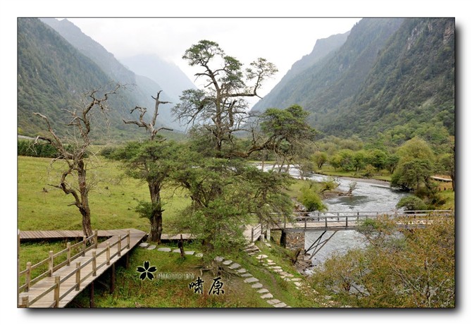 21日早上在藏寨作短暂停留后车队出发,翻过海拨4114米的夹金山,在中午来到位于小金县日隆镇的四姑娘山景区,本次将游览双桥沟景区。车友们乘上景区观光车,边观赏窗外景色,边开起了导游MM和司机的玩笑,车内笑声不断,很快来到双桥沟最高的景区停留。车友们下车后有些徒步观赏充满原始森林味道的植被,有些急忙换上民族服装就着美景拍摄照片。
